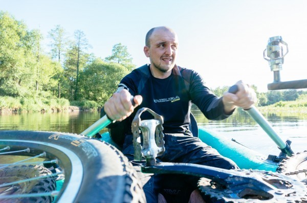 И, наконец, сентябрь 2017 года «Велогайна». Тоже с форсированием Цны и Березины. Ряд особенностей. Группа была почти женская. Немыслимый доселе состав! Средства переправы с велосипедами было уже гораздо совершеннее 2014-ого года.