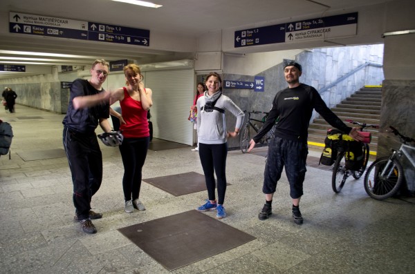 Встреча на ст. метро Институт культуры с уже купленными билетами была назначена на шесть утра. Стало быть, чтобы не опоздать, выехать из дома мне надлежало в пять, а встать в начале четвертого. Я представляла себе, как я покачу по пустому городу на рассвете, вдыхая утреннюю прохладу. И вот время Ч: на велосипед погружена велосумка небольших рамеров, за плечами – тяжеленный рюкзак с палаткой, спальником, ковриком и прочими вещами. Заспанный супруг провожает меня со словами: «Это безумие какое-то! Доедешь до Института культуры – позвони, я тебя заберу». Я включаю свою GoPro и плеер и двигаюсь в сторону Комаровки. И вот тут-то я понимаю, что мы с моим стареньким Kelly's безнадежно отстали от жизни. Вдоль рядов «Монетки» бурлит жизнь, как будто сейчас не пять утра в субботу, а новогодняя ночь на Бродвее. Торгаши клубникой, девушки на каблуках и вечерних платьях с недопитой бутылкой шмпанского, ночные проголодавшиеся тусовщики, поедающие шаурму на парапетах – кто-то смотрит на меня с улыбкой и интересом, кто-то с удивлением, а у кого-то в стеклянных глазах застыло равнодушие. На проспекте хорошо дышится – поливают дорогу машины, бредут, покачиваясь, студенты и ожидают первого транспорта молодые девушки с истрепанными прическами. Начинается новый день.