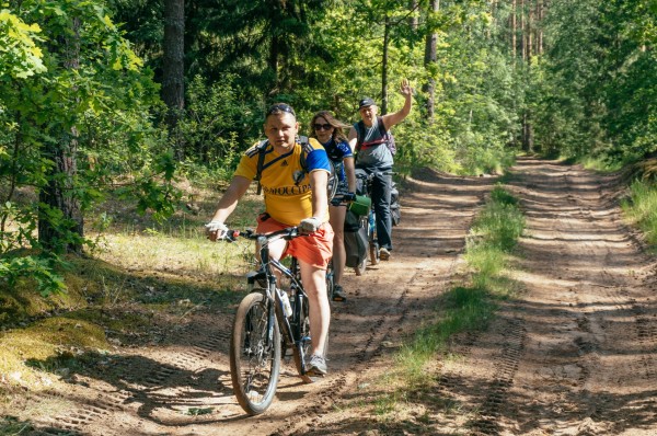 На поляне было уютно и немноголюдно. Некоторые участники велопробега уже ушли спать, а остальные заботливо развели костер и приготовили ужин – шашлыки и макароны с тушенкой. Группа Волосача живописала подробности переправы: на дно надувной лодки ложился один человек, сверху укладывалось два велосипеда, а второй человек греб к берегу.