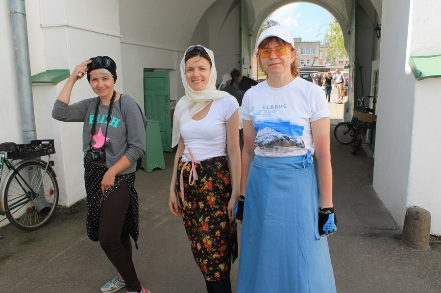 8.05. Достаточно длинный перегон по Р99, на которой было непривычно много машин, и Жировичи, где девушки были приодеты в соответствии с местной модой (см. картинку), а народу было вообще очень много с нашей одичалой точки зрения. Мое мнение: Жировичи, как и Лидский замок, были необходимы «для галочки», но произвели наименьшее впечатление.