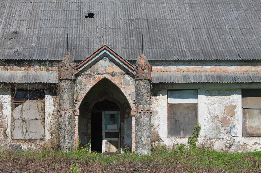 Сам ЖелудОк (а также Заря Коммунизма) оказался действительно интересным местом, сохранившим не только панскую усадьбу (впрочем, достаточно новую), но и прилагавшиеся к ней постройки для челяди, одна из которых до сих пор частично заселена. В отличие от Лиды здесь за 20 000 (за двух человек с двумя велосипедами) нам открыли двери и провели экскурсию по вполне еще сохранному зданию, которое в разное время успели облюбовать военные (оставив после себя звезду на потолке), разномастные гости (оставив после себя настенные надписи и рисунки), кинематографисты (оставив после себя обгоревшие двери, снесенные колонны и кое-какие разрушения поскромнее) и ласточки (оставляющие после себя гнезда). С последними сейчас начинают конкурировать новые собственники здания, грозящиеся его отреставрировать.