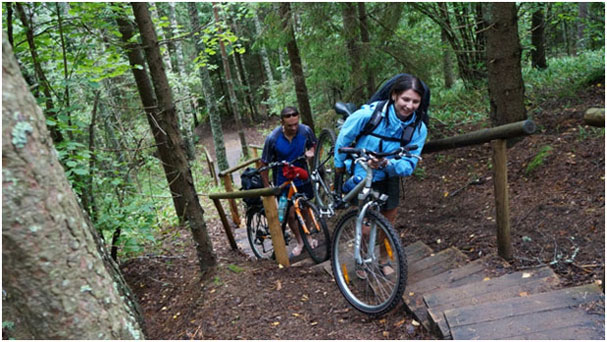 В целом Движение и маршрут были интересными: вроде, и не сказать, что сильно напрягались, но и расслабляться не приходилось. Порой на какой-нибудь склон еле сам забираешься, а еще и велосипед за собой тащишь...