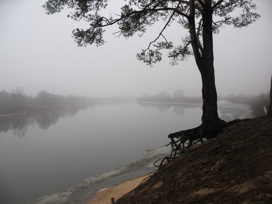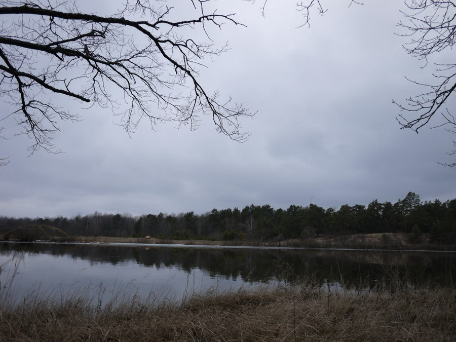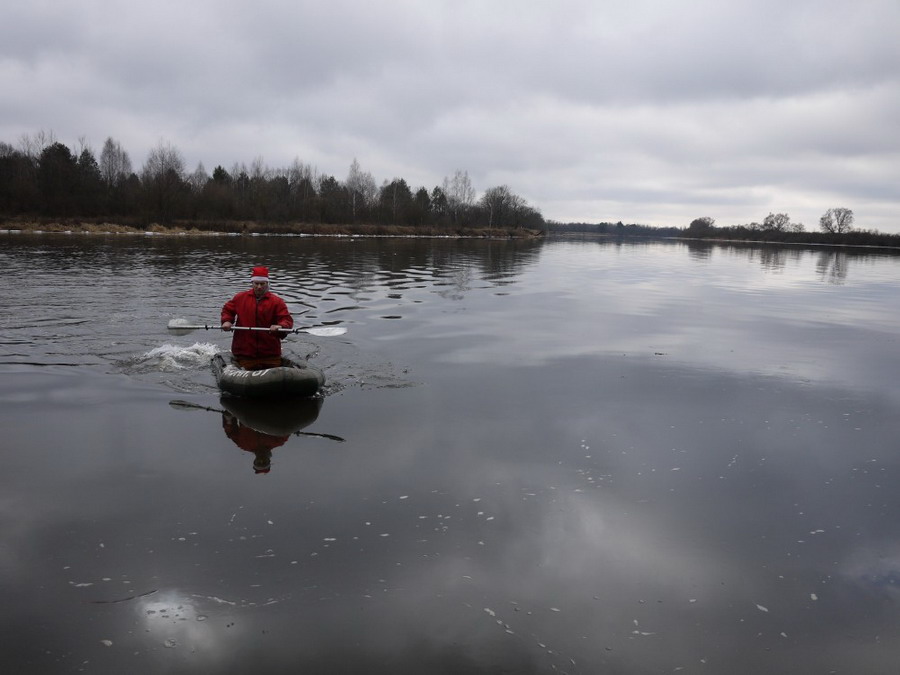 Ух-ты. Льда совсем нет. Две недели назад разведчики переходили Березину совершенно свободно. Ламинарная черная вода теперь бесшумно текла в делающем резкую луку русле. Единственный мною известный плес Березины, где течение строго на север.