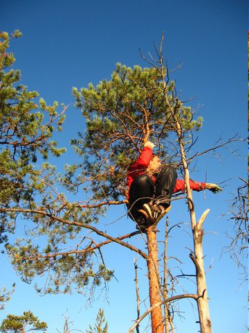 Стартовали мы ближе к обеду. А значит, снова нужно было торопиться. Даже очень, иначе ни мне, ни Ветрогону на работу в понедельник не успеть J. Начался второй болотный забег. Прерывался он редкими передышками, да сеансом связи – Алексу позвонил Леша Зум (в этот день в Пинске играли в «Отрыв») – чтобы перезвонить, Диггеру снова пришлось карабкаться на сосну. После кто-то из ребят предложил провести следующий «Отрыв» на болоте.