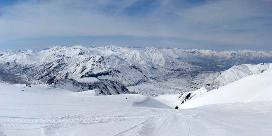Пейзаж в месте выгрузки можно описать не иначе, как инопланетным. Сложный рельеф вокруг, состоявший из бугров, впадин, расщелин и небольших кратеров, был покрыт блестящей на солнце снежной коркой. Вдалеке на юге драматично темнели под тяжелыми тучами три величественных вулкана. На северо западе под белым облаком располагалась груда породы, составлявшая вулкан Горелый. На юго-востоке торчали хищные зубы и рога оскаленного к небу кратера вулкана Мутновского, извергавшего плотные клубы дыма из дьявольской кухни. Какое угощение там готовилось знал только сам шеф-повар.
