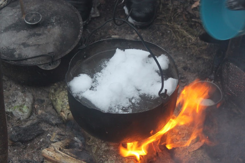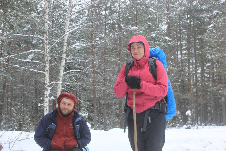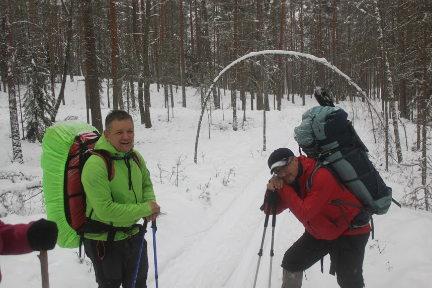 Группа поменяла свой состав. Но позитив и бодрость духа присутствовали неизменно. Снега в лесу прибавилось. И хоть лес был необычайно красив, любоваться этой красотой было довольно сложно, приходилось идти след в след и голова была опущена вниз. Это было однообразно и тяжело. Чувствовалась устлалась, накопившиеся за три ходовых дня.