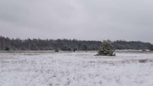 Регион. Маршрут проходил по территории земель Выгонощанского ландшафтного гидрологическго заказника. Трек в 42,8 километра (фактически длиннее) оказался исключительно динамичным. Меняющийся характер пути, рельефность и постоянная смена декораций не позволяли скучать. Получилось гораздо интереснее, нежели, скажем, унылое и физически изнурительное преодоление Болота Дулебского через обширное и бесконечное сосновое редколесье. Лесные дороги в заказнике находятся в запустении. Они прокладывались, может, еще в пятидесятых годах. На протяжении трека не встретилось промежуточных населенных пунктов. Вариантов схода с маршрута не было, кроме как возвращение или его прохождение. Значительная часть пути руководителем проекта была проложена по песчаным возвышениям «дюнам». Выгонощанский заказник – в основном заболоченные территории. За счет хорошего смерзания почвы и обилия льда, двигаться получалось легко и быстро. Но – очень скользко в резиновых сапогах. Инфантерию сопровождали постоянные многочисленные падения. Был даже один претендент непроизвольной попытки посадки одного из участников на шпагат! Пройденная территория не характерна на завалы и развитый подлесок. Из флоры (что не очень привычно для нашей средней полосы) лиственный лес: дуб, липа, клен (где выше), но в основном осина и ольха. Хвойного леса в Выгонощанском заказнике мало, сосна, елки и можжевельника не видели. Из зверья следы копытных. Но маршрут прошел без визуального контакта с животными. Стигмы присутствия грызунов – зайцы, бобры. Птиц в это время в лесу не обнаружено.