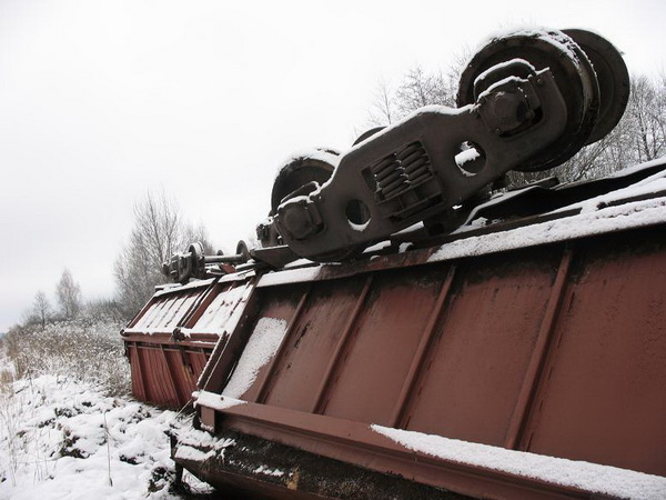 Далее встретились на нашем пути опрокинутые колесами в небо вагоны. Была в этих вагонах какая то монументальность и величие.
