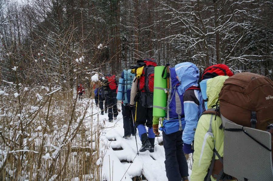 Радостные, полные сил и энтузиазма, с внушительными рюкзаками за спиной, мы собирались у национальной библиотеки. Несмотря на поздний час, усталость после рабочего дня, темноту вокруг и тяжесть рюкзака, внутри нас царила легкость бытия, жажда познания, ярких впечатлений и новых знакомств. Все делились своими мыслями о предстоящем походе, обсуждали снаряжение и прошлые походы, оценивали степень утепленности (январь месяц на дворе все-таки!) и… отогревали бутылочку «молекулярного» белого винца, и ждали опоздавших.