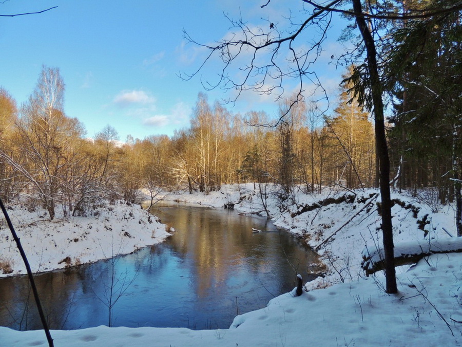 Потом мы продолжили наш путь вдоль реки. Сложностей и сюрпризов ни маршрут, ни погода нам не приготовили. Легкий морозец и ясное небо создавали идеальные условия зимнего для похода, а запас провианта и времени – для частых остановок с подкреплением сил.