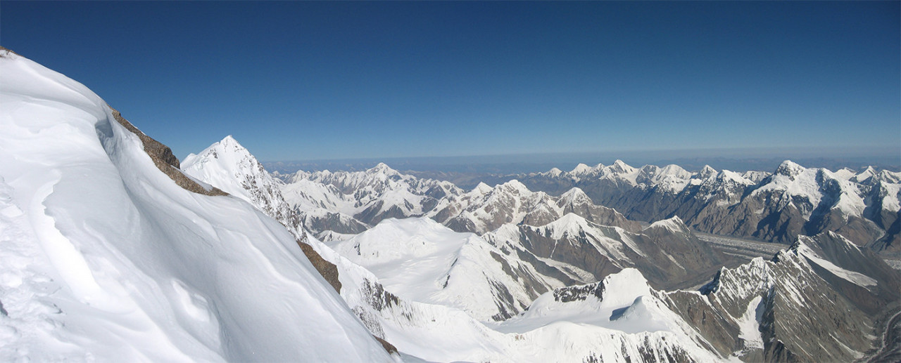 Утром всё гнало нас вниз. Погода испортилась, висела облачность, дуло. Отказала последняя зажигалка. Пришлось просить у эстонцев. Пока собирались, подошла четвёрка бородачей, спросили сколько до Обелиска, и узнав, что 15 минут, заторопились на восхождение ловить последний шанс. Когда вышли, облачность рассеялась, но осталась лёгкая метель и мороз. Два раза останавливался, манипулируя с одеждой, одел горнолыжную маску. Догнал Максима на вершине Важи. Склон был заметён и опять лавиноопасен. Начали аккуратный спуск. Дальше камни, лёд, перила, народ, подымающийся вверх. Ниже 6500 опять вошли в облачность, здесь температура положительная, но высокая влажность, подлип. Кажется, и спускаешься, и дышится легче, но когда все силы оставлены на горе, теперь уже просто дорабатываешь в том темпе, который у тебя есть. Забрали заброску на 6300. Встречные уже узнавали нас, сразу поздравляли. Некоторое время "Беларусь два", наш позывной, была на слуху.