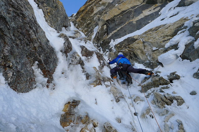 Это был прекрасный маршрут с захватывающей дух линией, со многими вариациями прохождения. Мы преодолели сложности по шотландской шкале VI, наибольшие сложности возникли на четвертый день. когда мы преодолевали несколько очень сложных микстовых участков с выходом в кулуар, обрамленный монолитными стенами.