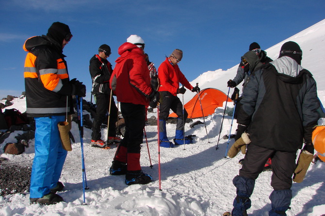 Костер был жаркий. В ледниковой зоне был Полковник, Витя, Глаз и Максым-Шаро. Остальных, как посвящение, били лопатой по жопе. Причем нужно было клювом ледоруба держаться за какой-то естественный бруствер. После лопатой по жопе, Витя наливал по пол-стакана 50-и градусного спирта. Били всех, кроме перечисленных. С каждым следующим человеком (шли они не подряд, в промежутках возвращались к костру) Глаз все более разогревался и всё сильнее размахивал лопатой. Все эммоциональнее были речи, все громче кричал гроулингом, а удар по заднице лопатой сопровождался все более одобрительными возгласами и поощрительными овациями. Не знаю во что бы посвящение переросло дальше, но благо закончились посвящаемые и потом стало темнеть.