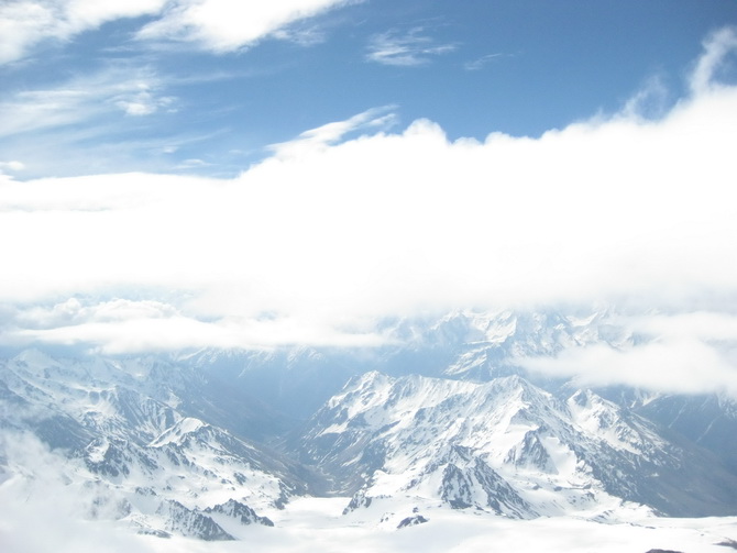 После пивка "Терек" и "5642" парились в бане. С кряхтением и эммоционально. Кого-то из ушата облили холодной водой. Можно было слышать по-женски высокие вопли, не ясно кому принадлежавшие. Дальше был стол. В кафе основой интерьера были флаги групп, поднявшихся на Эльбрус. Хозяин спросил на счет нашего флага. Мнения разделились. Нужен был совет. Связались со Смирновым. Решено было, что флаг у нас есть на крайний случай еще один, да и можно сделать больше. А здесь на стене подобного такого нет, и, пожалуй, как пиар здесь он свое отработает. Факт, что эту "Саклю" посещают регулярно и белорусы. Найдут что-то родственное. Оставили. И еще один российский, каким-то боком оказавшийся у Алексея. На наш черный, автографы не оставишь. Оставили на российском. А стол был вполне...