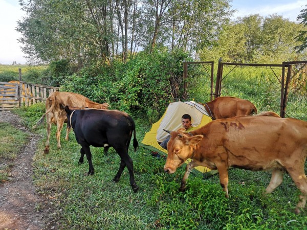 Остановились в произвольном месте. Снова ночевка, кто в бусике, кто в палатке. Мощный, говорят, свалился в какой-то овраг. Лаяли собаки. Три или четыре, они не боялись и подошли совсем близко к палатке. Глаз уже собирался их выйти и шугануть.