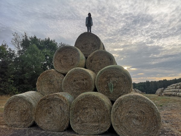 Ходили фотографироваться к катушкам соломы. Здесь было их собрано превеликое множество. Машу, как трезвую, Глаз и Мощный отправили залезть наверх пирамиды. И даже подначивали подпрыгивать на самом верху.