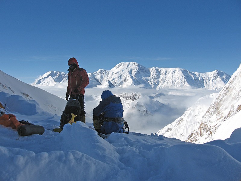 Неожиданно сверху спустился альпинист и начал возню возле своей палатки со снегом, джет-бойлом и чаем. Наконец, я понял, процесс благополучно закончился. Я вылез и помахал ему рукой. Он поздоровался, и спросил, говорю я по русски или английски. Сошлись на русском, английский мой полный бэд. Мужик, Алекс из Бостона, живший ранее в России, и решивший вспомнить молодость. Ходил на купол для акклиматизации. Дело уже к вечеру, надо готовиться к завтрашнему выходу, ужинать, готовить чай в термос. Как только солнце зашло за хребет, сразу резко опустилась температура, стало морозно. Даже по ощущениям, значительно холоднее чем в лагере на 4500. Перед сном прибил головную боль ещё таблеткой Цитрамона. Пришлось ночью несколько раз выходить под действием мочегона.