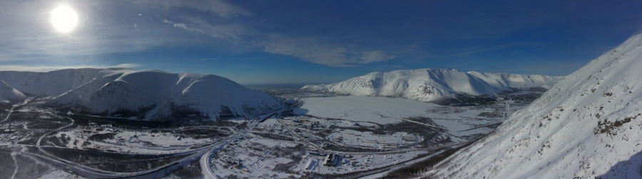 Наконец-то установилась погода. Солнечно и мороз около 10 градусов. До Юкспора доехали на городском автобусе. Вообще, это у меня в жизни впервые, когда на восхождения едешь на общественном транспорте. Мы неплохо изучили его расписание и пользовались ежедневно. Единичка Б на Юкспор не предвещала сложностей. Решили идти два параллельных маршрута с общей встречей на гребне. Но на практике вышло совсем все по-другому. Во первых звено Смирнова промахнулось со своим треком и вышло на маршрут звена Полянской. А во-вторых в Хибинах начались соревнования по альпинизму, и на гору одновременно лезло около тридцати человек. На склоне началась неразбериха, в которой мы в полной мере поучаствовали. Но, тем не менее, на гору мы забрались первыми из всех. Правда, девушки немного нервничали, и нам пришлось провесить для них почти весь гребень и на подъеме, и на спуске.