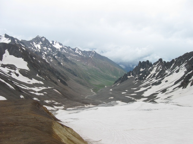 Побродив по снежному болоту в поисках тура, плюем, поздравляем друг друга с горой и все, айда вниз. По скорому, глиссером и большими прыжками через полчаса мы возле палатки. Собираем все и продолжаем спуск. На спуске встречаем железноводцев, они проспали похлеще нашего.