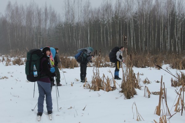 71-ый поход был проведен Глазом 10-14 февраля. «Прорыв через Ольманы» проводился в пешем формате. К этим числам подморозило. Отпустило сразу после похода. Группа в 12 человек прошла с юго-запада на северо-восток самое обширное по площади болото в Беларуси – Ольманское или Ольманы. Удивительным образом болото в нужном направлении пересекает цепочка возвышений – дюн. Нечто совершенно уникальное. Среди зыбкой податливой болотной низины узкие гребни локальных возвышений с могучими местами соснами. По ним исключительно удобно и быстро идется через этот своеобразный затерянный мир. Морозы в последнее время для зимы в Беларуси не характерны. Но в 2017-ом повезло. Хоть не были они продолжительны, зато оказались достаточны, чтобы скрепить болотную почву в самых зыбких местах. 37 километров пути по Ольманам дались значительно легче и «дешевле», нежели прохождение аналогичного расстояния по Болоту Дулебскому в декабре 2016-ого.