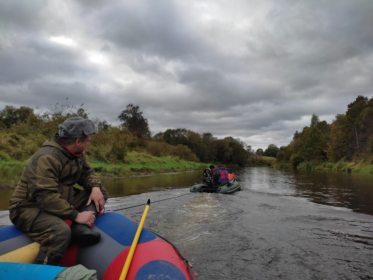 По началу управлять рафтом не получалось, постоянно заносило и разворачивало лодку. Мотор оказался слабым, казалось, вот-вот и сломается. Периодически наматывались на винт то водоросли, то буксировочная веревка. Промучившись с пол часа, плюнули взялись за весла. Но на веслах в груженом рафте далеко не уйдешь. Он тоже не очень хотел идти. Пошли шутки, что поход перестает быть «пенсионерским». Где-то через 2 километра решено было попробовать буксировать рафт моторной лодкой снова. То ли консультации Глаза по вайберу, то ли стойкое нежелание снова браться за весла привнесли свою лепту, то ли «дело было не в бобине», но процесс пошел, лихо пошел. Можно было уже начинать наслаждаться всеми прелестями пенсионерского похода.