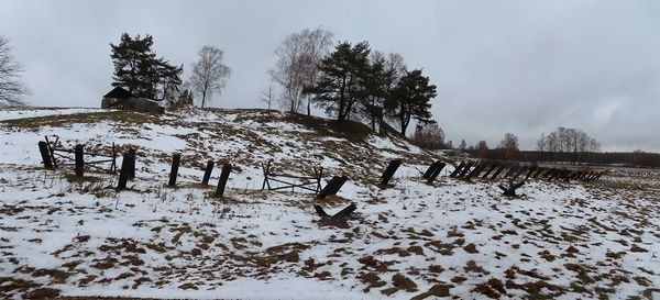 Внизу холма имитация противотанковых надолбов и зарытых швеллеров.