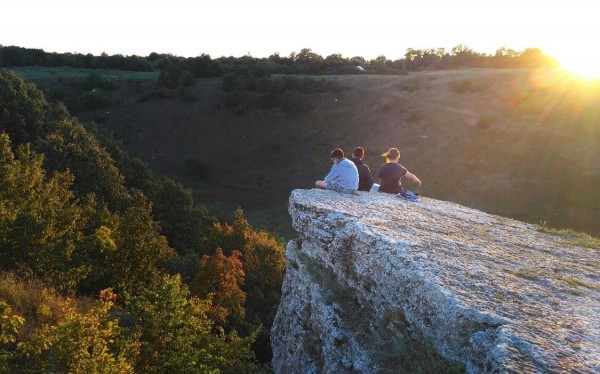 Приехали на стоянку уже в ночи. Вокруг - кромешная тьма, а наверху - звездная россыпь... август все-таки. Единственный, кто нас встретил - ежик, как предвестник нашего основного маршрута на скалах. Быстренько поставив палатки, улеглись спать. Утром юным скалолазам не спалось, поэтому, позавтракав, отправились искать сектора с простыми маршрутами. Так как расположились мы на большой нижней стоянке массива "Звонари", то на скалы приходилось совершать маленький трип - сначала вверх, на плато, а затем по крутой и скользкой тропинке вниз, под маршруты. Получалась такая хорошая разминка.