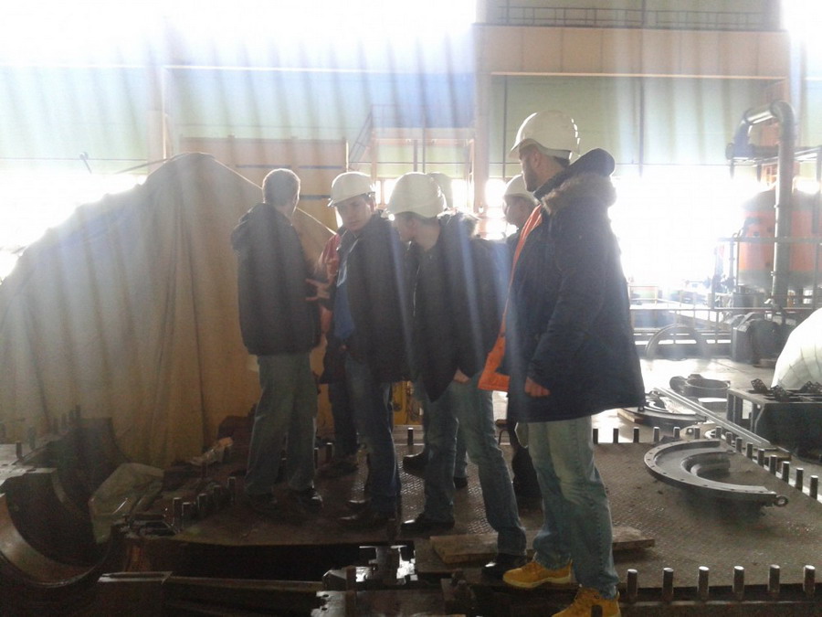Наконец настал черёд главной достопримечательности первого энергоблока. Пройдя запутанными коридорами, мы оказались мы оказались в огромном зале высотой с два девятиэтажного дома. Немного не доходя до крыши, в центре зала возвышался колоссальных размеров котёл. Глаз предложил подняться на самый верх. Ужасно ажитировавшись, мы стали подниматься по причудливо расположенным металлическим лесенкам. Бац! Голова в каске въехала в косо расположенный над лесенкой швеллер. Ту-дум! – внесла свою лепту сбоку толстая труба. Тут уж я порадовался, что в каске. А не то пришлось бы многим из нас после экскурсии ехать не в сауну, а прямёхонько на работу к Соньке. По пути наверх мы заглянули в неработающий котёл. Адского пламени здесь не было, и можно было разглядеть тысячи трубок внутри. Говорят, один раз через дефект стенки образовался свищ. Пар в котле нагрет до таких колоссальных размеров, что едва ли это уже пар. Скорее плазма – такова внутренняя энергия нагреваемой воды. Невидимой глазом и вырывающейся через свищ струей как-то разрезало даже человека проходящего мимо работника.
