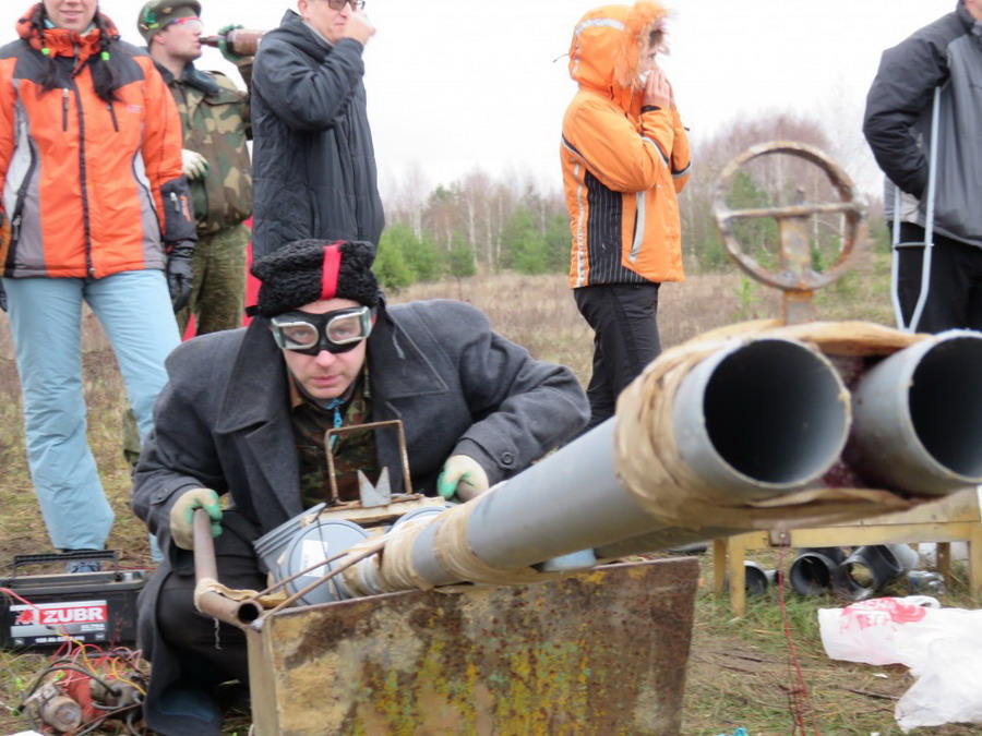 Ба-бах! «Чудо инженерной мысли» совершило реактивный кульбит, отлетев на несколько метров назад в полном соответствии с третьим законом Ньютона. Пришлось во время всех последующих залпов придерживать его ботинком. Вернувшаяся искра тоже всё время норовила скрыться — дезик коротил контакты. Зато звук получался — высший сорт!
