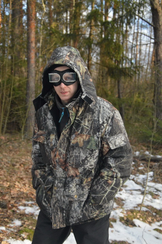 За пару дней до Нового Года неожиданно ударили долгожданные морозы. Теперь 3 января термометр показывал минус 18 градусов. В лесу было необычайно красиво. Реку сковало льдом: мы её без труда пересекли пешком в импонирующем нам месте. В лесу в ходе рейда отыскали немало подходящих для мероприятия объектов: беседки, хижины, ячейка для танка времен ВОВ, охотничья вышка-засидка и даже более двадцати вкопанных в землю пеньков (бывших свай от неизвестной постройки), которые были как раз на таком расстоянии, что годились на то, чтобы по ним перескакивать (в некоторых местах не без определенных трудностей).
