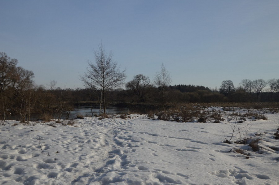 Снова хлопали выстрелы пушки. На пятьдесят метров отступала от леса резкая лука Свислочи. Слегка кочковатый неровный луг был присыпан гранулированным снежным крошевом. Ламинарная темная вода русла зеркально отражала склонившиеся над ней ветви верб. Из воды торчали фрагменты разрушенной кладки. Шурша в воздухе, летящие кртофелины с брызгами разбивались о щиты. Те, что летели мимо, падали в воду, поднимая всплески.