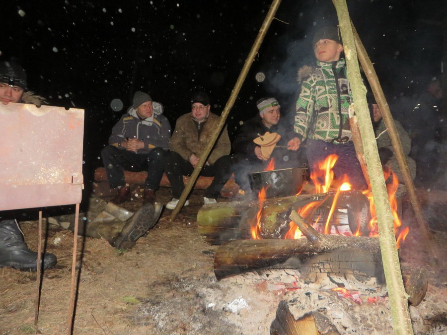 Тепло, светло не смотря на темень, людно и шумно было в тот вечер 6 февраля в Басковщине. Людей значительно добавилось за счет приехавших гостей. Были и запланированные члены команд, но не способные утром выступить на Спортивно-экологическую Тропу Смирнова и по этому просачковавшие. Контингент это, конечно, не надежный.