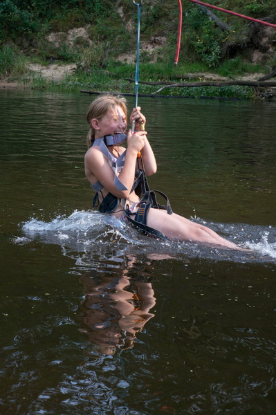 В конце концов соорудили, что хотели, что могли и что не планировали даже. Подготовили кинотеатр для вечернего просмотра фильма. И, айда, прыгать на троллее в воду.