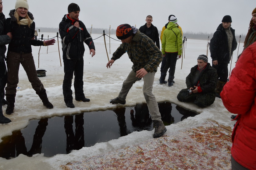 Пока мы находились в лагере некоторые команды для хорошего кадра открыли купальный сезон в проруби, после чего фотоконкурс был закончен и объявлен сбор на экскурсию.