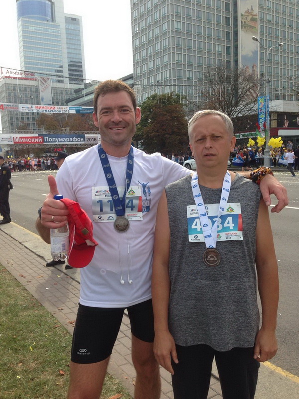 Состав команды: Анатолий Якимченко и Михаил Трафимович. Всего финишировало около 13 тысяч участников на 3-х дистанциях. Опытный  Анатолий бежал дистанцию 10,55 км, время 1:04:57 (66-е место в группе). Михаил-СБХ одолел 21,097 км за 1:54:30, и занял 100-е место в своей группе.