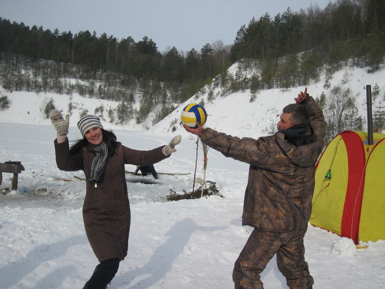 Утро же с Magadan.by у меня стойко ассоциируется с какао от Саши Смирнова – от этого напитка очень уютно в лагере. Это не единственное его фирменное блюдо – еще глинтвейн и скумбрия на костре (это воспоминая со времен поездки в Дениши 2012). В воскресенье и по мишеням стреляли, и поставили настоящий рекорд для «Книги рекордов Гиннеса 2013» – волейбол на снегу вблизи проруби от сектантов Magadan.by – 38 ударов!!! ДА! Мы такие! Мы это сделали – 38 ударов!!!