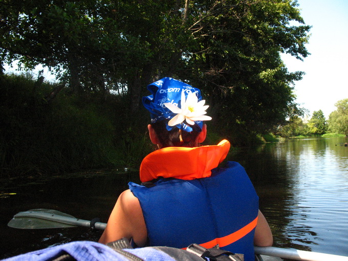 Со слов Глаза, речка была широковата для байдарок и не отличалась течением, поэтому средняя скорость составляла поначалу 5 км в час. Шли достаточно дружно и воодушевленно, каждый экипаж беседовал о чем- то своем и удовлетворенно загребал веслами. С первых минут и до окончания сплава впереди шла чета Смирновых, которые нашли свой темп и работали достаточно слаженно.