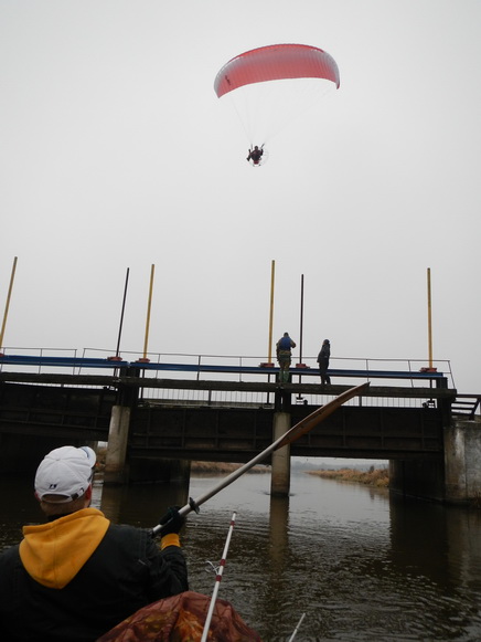 Парапланерист имел нескрываемый интерес к нам, водным туристам. Он то приветствовал нас махами руки, то снижался, почти мокая в воду, или и вовсе взмывал в поднебесье.