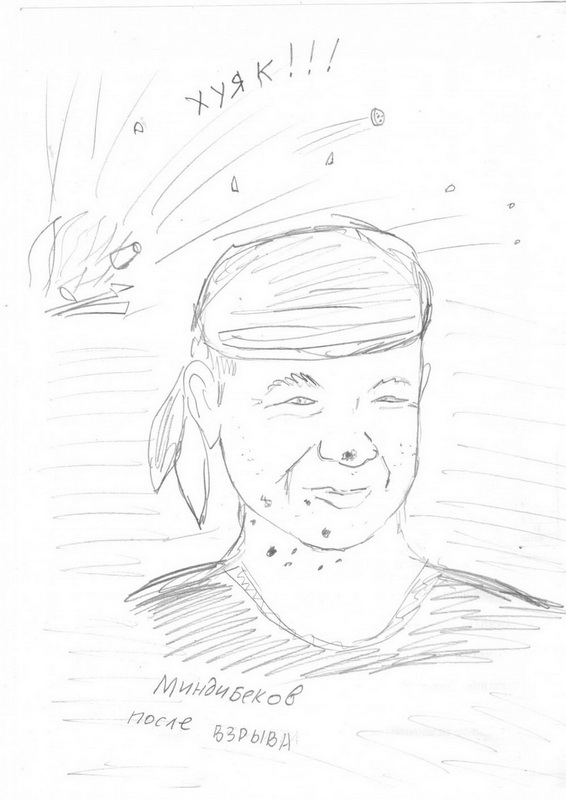 Миша собрал мусор и вместе с ним бросил в пакет аэрозоль от клещей. Все это от кинул в огонь, чтобы уничтожить. Аэрозоль от нагрева взорвался и по каким-то невероятным обстоятельствам он выстрелил прямо в лицо Миндибекова.