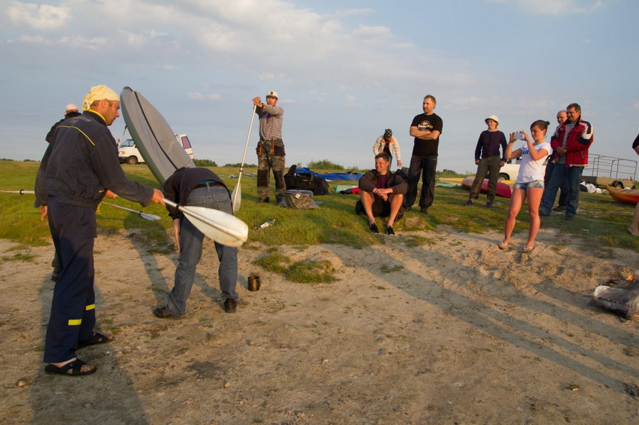 Ну вот у мэтров таких как Руся, Глаз, Назарчук суда шли совершенно ровно. Да по их виду не скажешь, что они сильно напрягались. Мы же гребли, гребли, гребли… только , чтоб не отставать! Лязгали друг в друга веслами, но все равно отставали. Груза вроде бы не много, но места в байде на посадку было впритык.