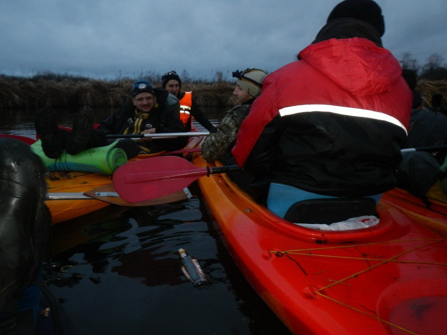 Двадцать пять километров мы шли по Березине. Прибыв на место финиша, все были мокры, усталы, замерзши, но счастливы. Байдарки въехали в мелиоративный канал и подошли прямо к шоссейной дороге. То была деревня Большое Стахово. Помогал собираться придорожный фонарь. Он правда то гас, но через кокое-то время неожиданно зажигался снова. На антистапеле ВДВ совсем напился и разводил Токаревшину.