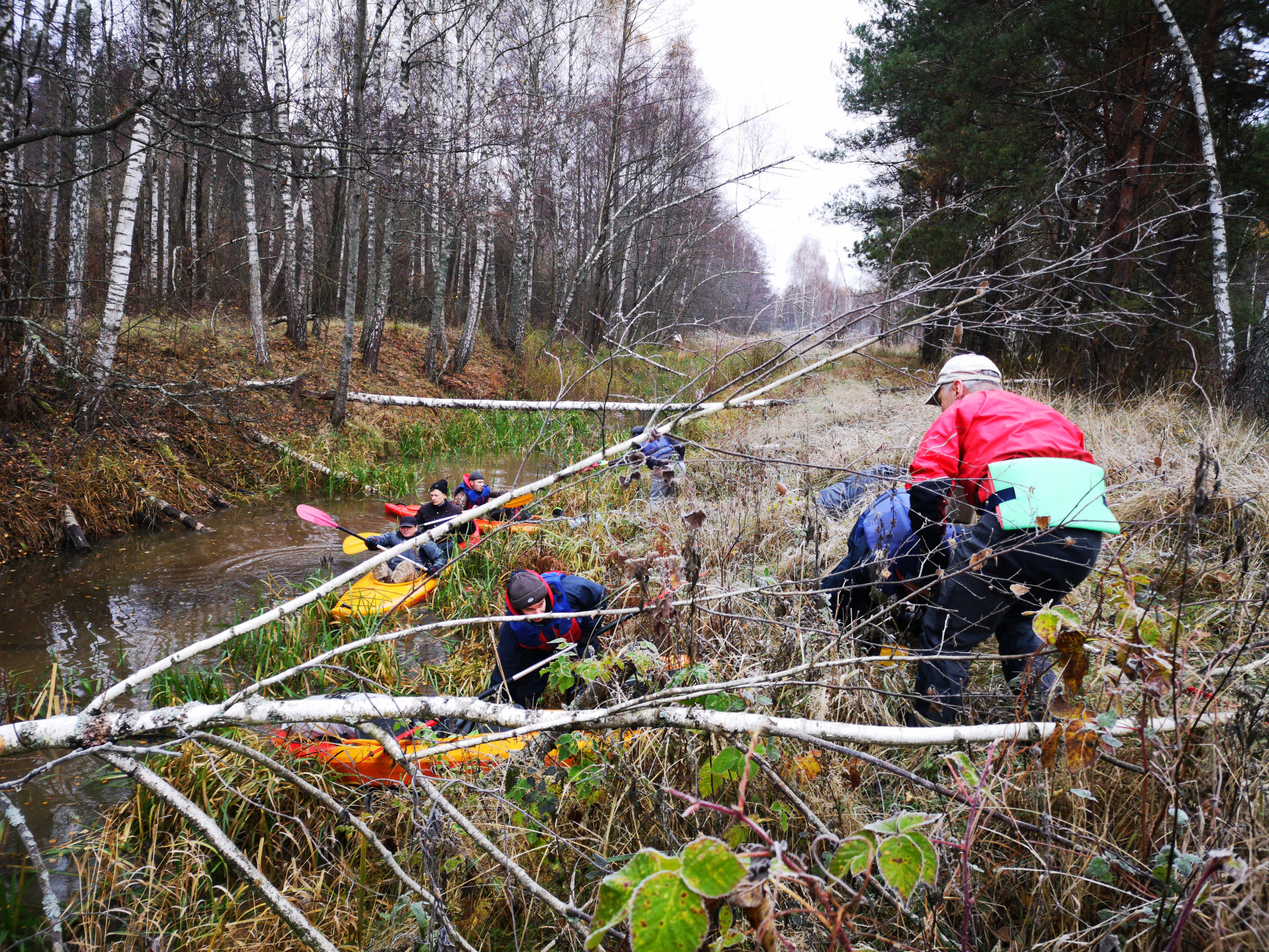 Канал дикий и крепко заросший. Давно его мелиораторы не обновляли. Много как отдельно упавших деревьев, так и завалов. 8 километров мы шли 4 часа.