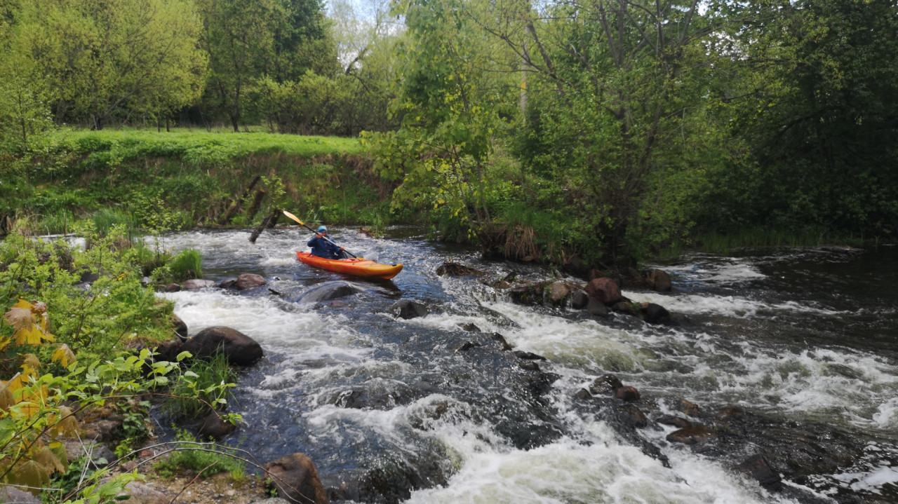 Много перекатов, залежей камней встретилось на пути. Отдельные валуны попадались в русле не характерных для Беларуси размеров. Нередко преграждали путь переброшенные через русло мостики. Одно из препятствий было особенно оригинального свойства. Точно почти, как в декабре на реке Сула. Это прохождение через трубу. Только воды в трубе больше. Ощущение при сливе в трубу, словно ты в аквапарке на аттракционе свет в конце тоннеля. Требуется пригнуться, сгруппироваться, нахуй-блядь. Когда смотришь на нижнюю апертуру трубы, байдарки оттуда выстреливает, будто под давлением.