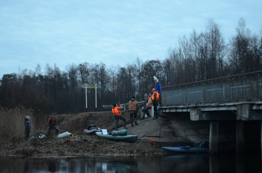 Местом второго привала послужила покосившаяся дощатая пристань с парой деревянных беседок и мангалом, нагруженным кучей гнилого хлама. Там уже всех приветствовал с широкой улыбкой и водко-закусочным угощением Летчик с компаньоном Федей и котом. Пока не набежала толпа людей-амфибий, у мангала еще можно было как-то согреться и даже вскипятить кружечку воды. Но вскоре стало совсем тесно, и пора было снова идти греться на веслах.