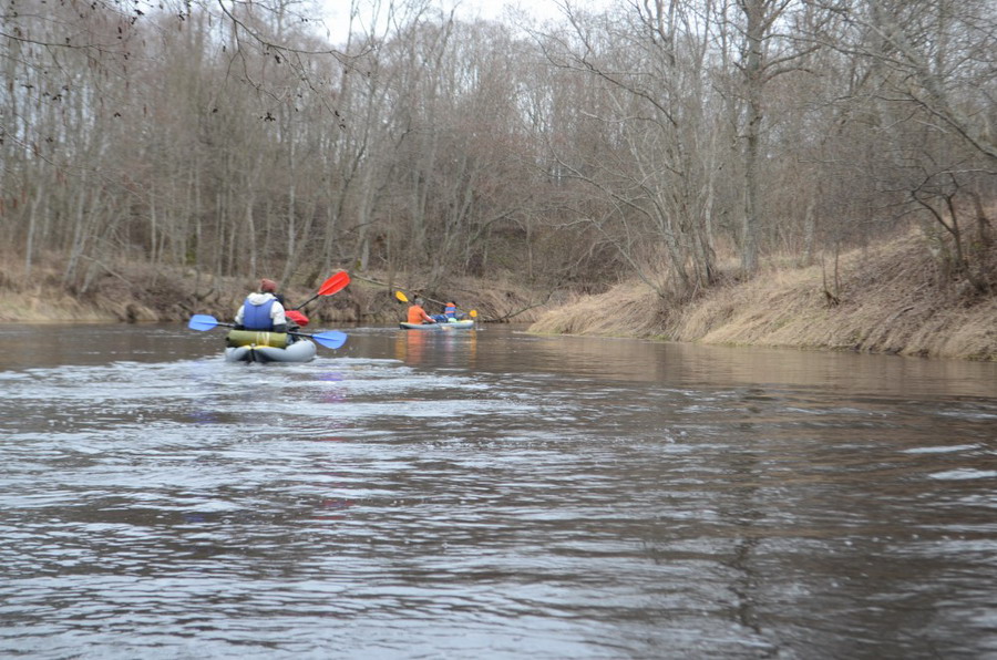 Спустя какое-то время, пару менее интересных завалов и один веселенький порог, мы вышли на финишную кривую, миновав устье Нищи. Остаток пути предстояло пройти по реке Дрисса до моста возле деревни Дерновичи. Бурливая и звонкая с обилием перекатов в верхнем течении река, на которой я уже был когда-то летом, здесь представляла собой широкий ровный и стремительный поток. Довольно высокие ее берега обрамлял густой и величавый ельник.
