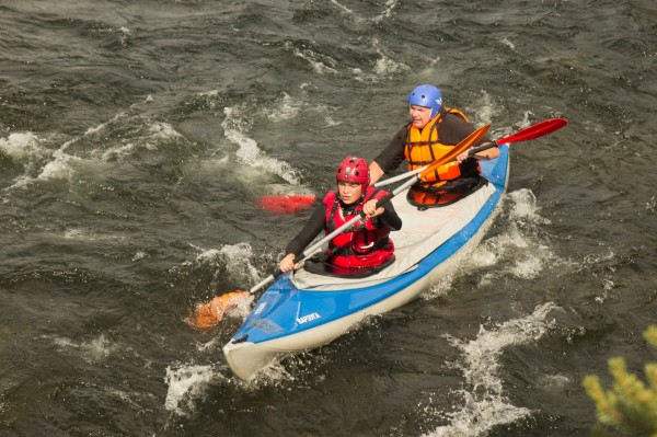 Ждать пришлось долго, но вот наша синяя байдарка показала свой нос из-за поворота. Гаврилюки слаженно работали веслами. Они изящно обогнули все камни и скалы, аккуратно скатились с порога и прошли по основному языку – так, словно это была легкая разминка перед утренней йогой.