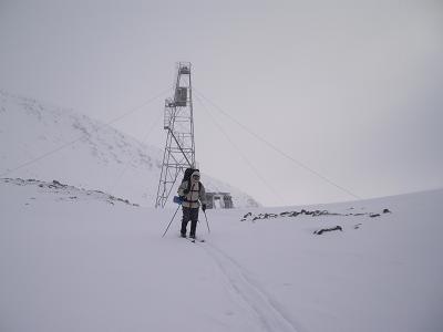 Угол подъема увеличивался, и мы намазали лыжи плюсовой мазью. Пошли через убежище с мощными надувами, карнизами и неровным профилем.
