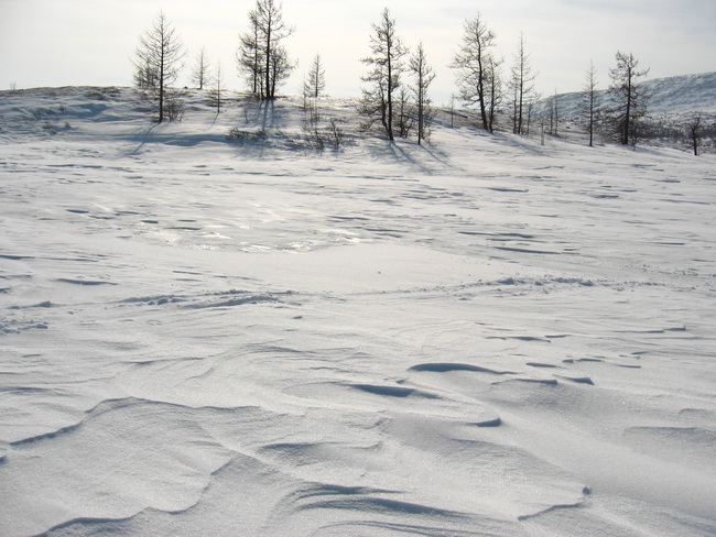 Сняли лыжи и пошли пешком. Снег был рыхлый, и мы его просто лопатили, что было значительно дороже, чем идти на лыжах. Но мало ли куда на лыжах попрет, а есть куда, в том числе и к пращурам.