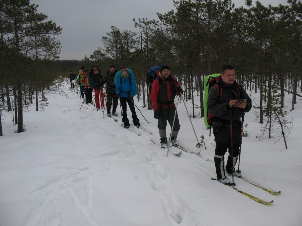 Лыжи на троссиковых креплениях признаны самым адекватным вариантом передвижения в условиях зимнего болота, погода – благоприятной.