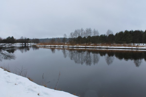 Темнело. Шли по обрывистому берегу Вилии. В темноте на лыжах идти довольно напряженно для глаз, ювелирно: нужно выхватывать не абстрактное место для шага, а конкретную форму лыжни. Около 20.00: дошли до места ночевки внезапно и радостно.